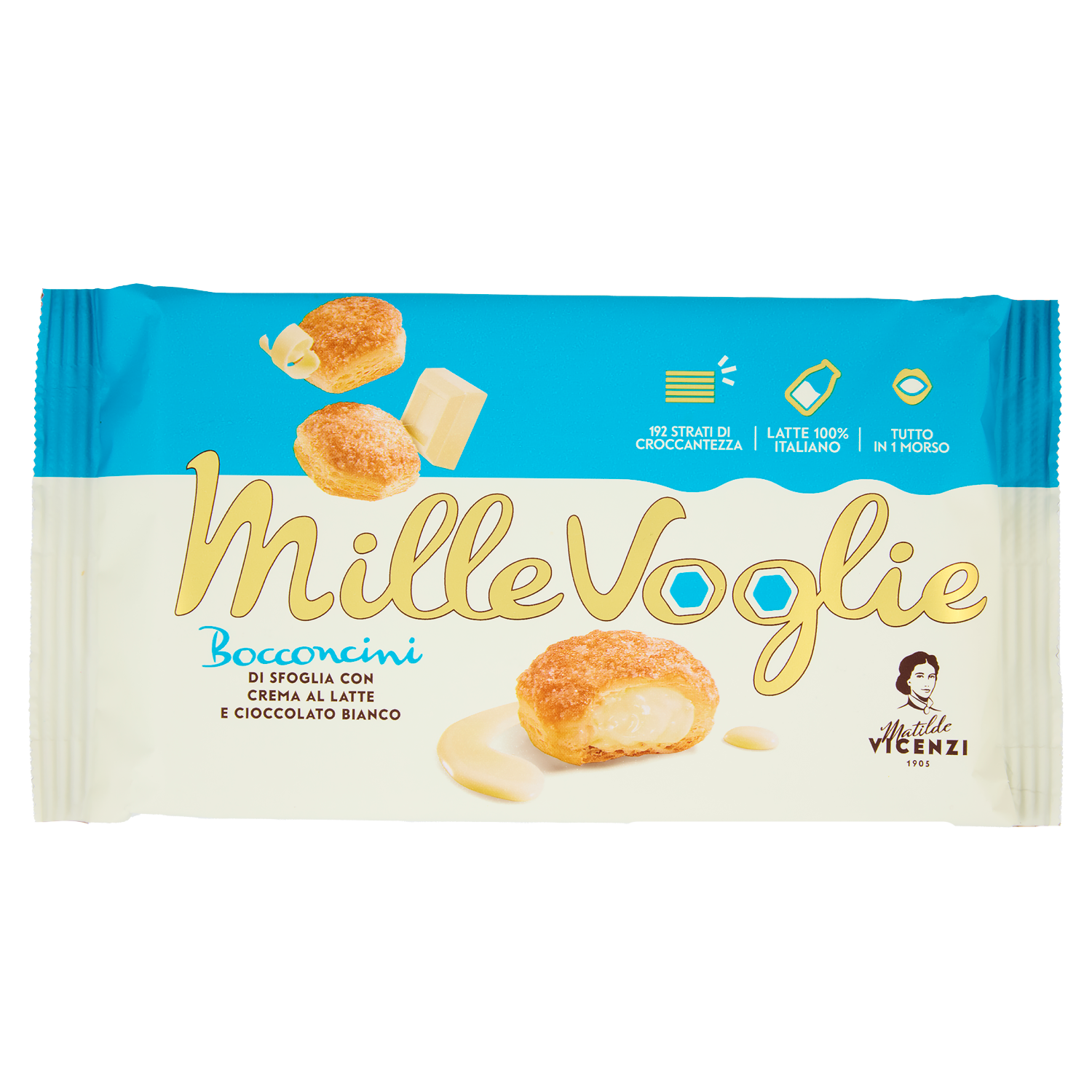 Crema al latte 35% [oli vegetali (palma, soia, girasole), zucchero, amido di mais, latte* scremato in polvere 11%, destrosio, cioccolato bianco 2% (zucchero, burro di cacao, latte* intero in polvere, emulsionante: lecitina di soia, aroma naturale vaniglia), aromi naturali, emulsionante: lecitina di soia]